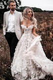 Gorgeous Ivory Lace Appliques Off Shoulder Wedding Dress A-line Long Bride Dresses OKV21
