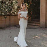 Simple Beach Mermaid Wedding Dresses Off The Shoulder Bodice Boho Mariage Gown OKV33