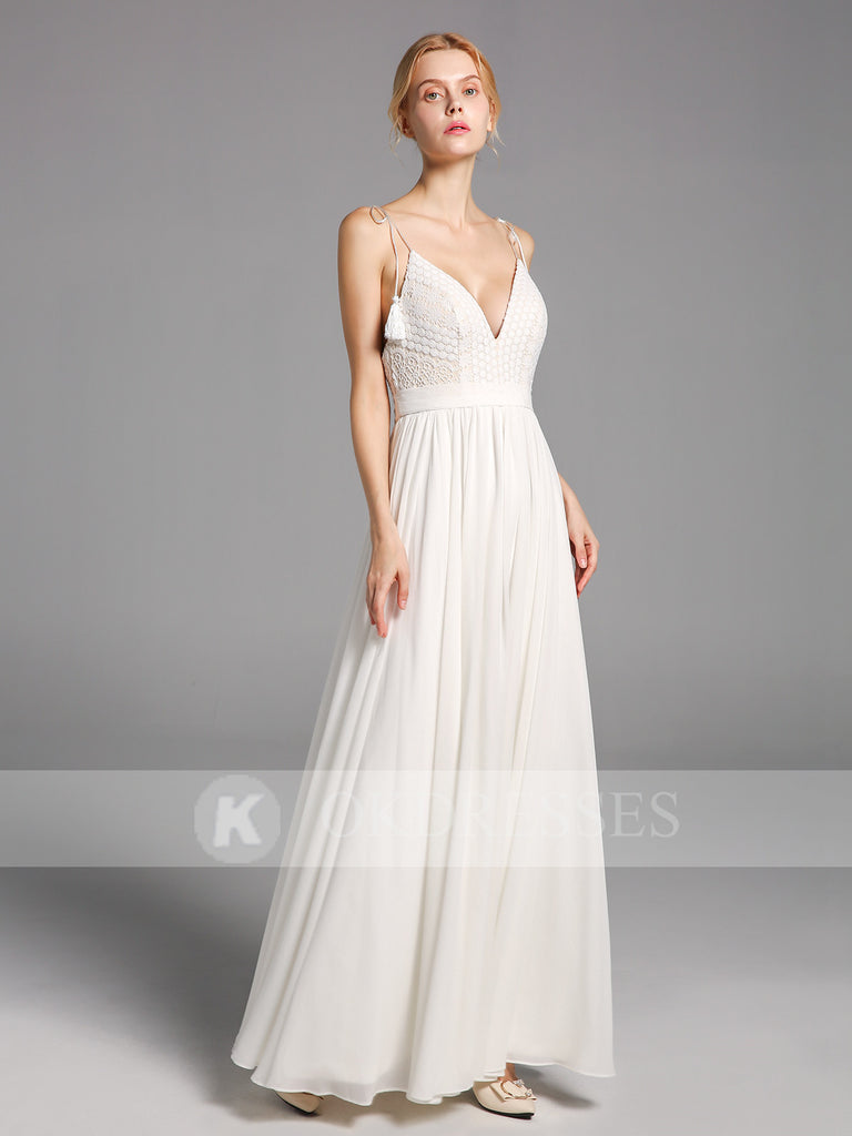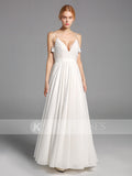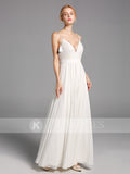 Simple Chiffon Long Wedding Dresses A-line Spaghetti Straps Bridal Gowns OKV14