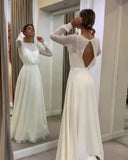 Simple Long Sleeve Wedding Dress A-line Open Back Custom Made Women Chiffon Bridal Gowns OKV53
