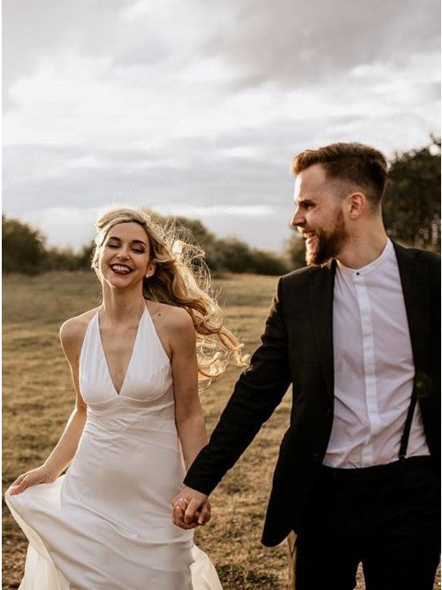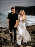 Sheath V-Neck Sweep Train Ivory Simple Wedding Dresses Bridal Gown OKL11