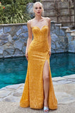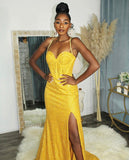 Yellow Sequined Mermaid Spaghetti Straps Long Prom Dress Formal Evening Dress OK1608