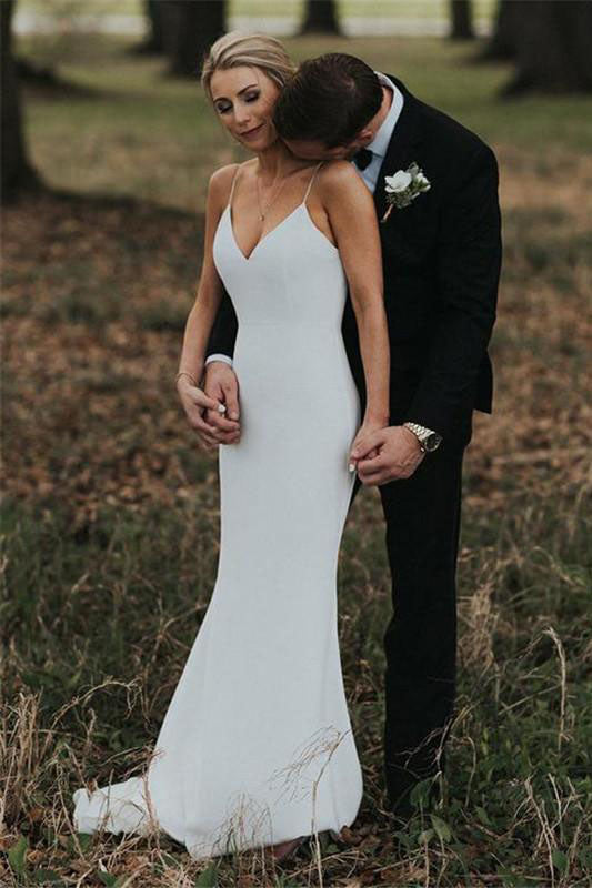 Mermaid Spaghetti Straps V-Back Simple Cheap Wedding Dress OK1078