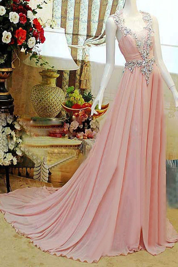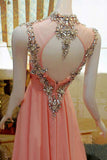 Pink High Low Backless Beading Long Chiffon Prom Dresses K89