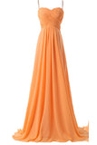 Spaghetti Straps Long Orange Chiffon Beading Prom Dress K167