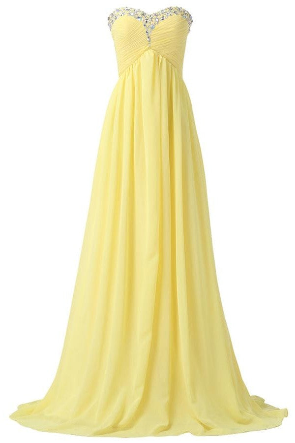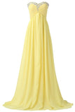 Yellow Chiffon Beaded Strapless Lace Up High Low Pregnant Prom Dress K745